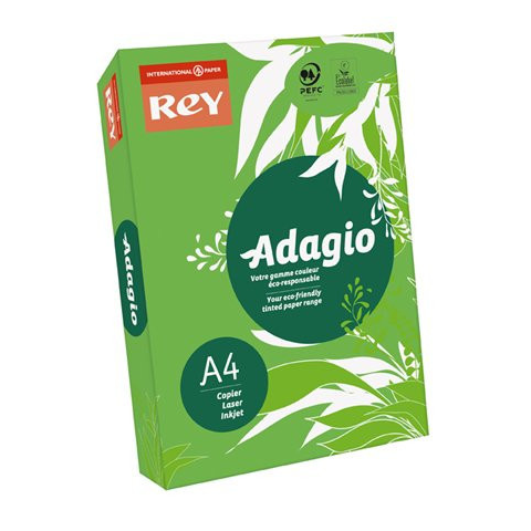 Másolópapír, színes, A4, 80 g, REY Adagio, intenzív zöld - kiváló minőségű, kétoldalas másolásra is alkalmas, anyagában színezett másolópapír - felhasználható fénymásoláshoz, tintasugaras és lézernyomtatókhoz - megkapta a PEFC tanúsítványát, megfelel