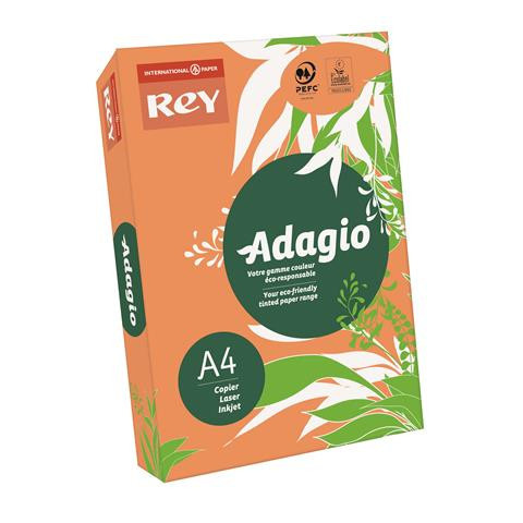 Másolópapír, színes, A4, 80 g, REY Adagio, neon mandarin - kiváló minőségű, kétoldalas másolásra is alkalmas, anyagában színezett másolópapír - felhasználható fénymásoláshoz, tintasugaras és lézernyomtatókhoz - megkapta a PEFC tanúsítványát, megfelel