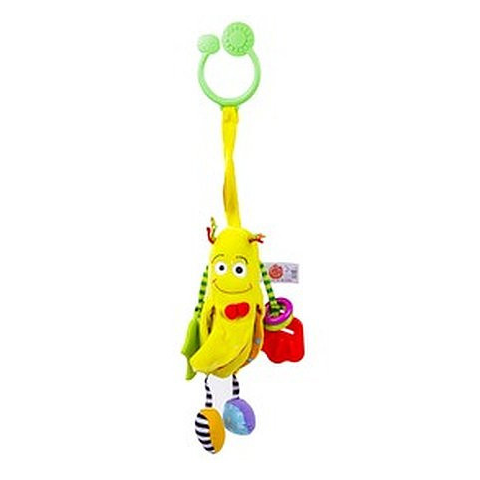 Puha textil bébijáték. Ez a jópofa banán csörög és rezeg, két műanyag rágóka van rávarrva, melyek könnyítenek a fogzás nehézségein.