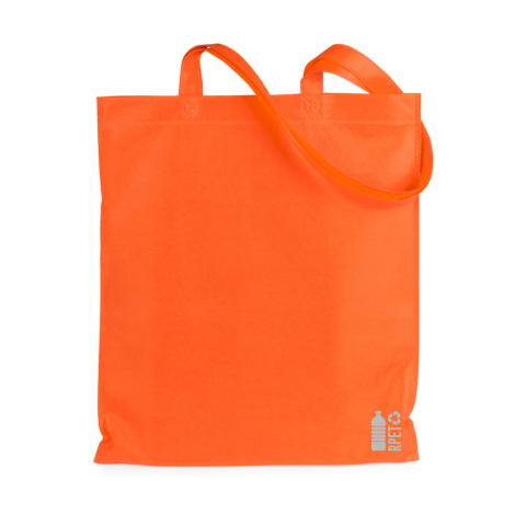 RPET non-woven bevásárlótáska hosszú hordfüllel, 70 g/m². Megkülönböztető RPET felirattal.