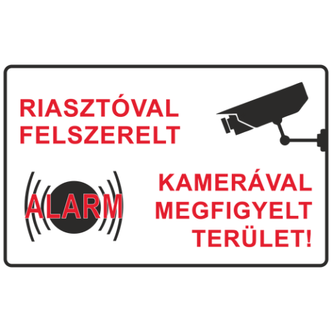 Riasztóval felszerelt és kamerával megfigyelt terület! műanyag, 300*450mm