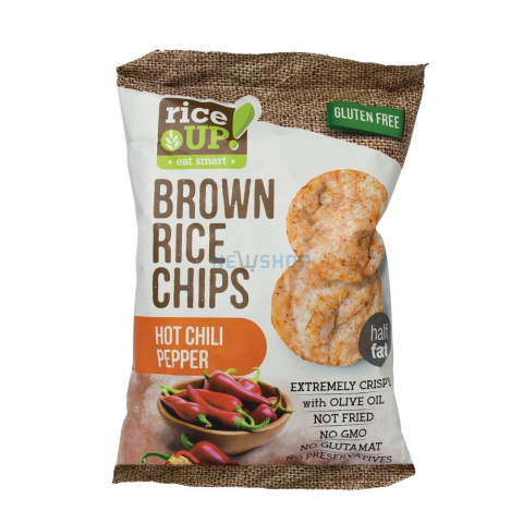 Teljes kiőrlésű rizs chips, a Rice up jóvoltából. A termék gluténmentes, valamint nem olajban sütött. A teljes kiőrlésű barna rizsből készült chipszet 60 grammos kiszerelésének köszönhetően könnyedén magával viheted bárhová.