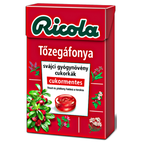 1 kép Ricola Tőzegáfonya Gyógynövényes Cukormentes Cukorka 40g