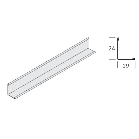 L keresztmetszetű horganyzott acéllemez profilok, látszó felületükön fehér bevonattal. Mérete: 19x24x3000 mm