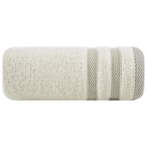 Bolyhos és nedvszívó törölköző pamut frottír klasszikus díszített elegáns bordure pólyákon fényes szál. Könnyen mosható. Szélesség: 70 cm, hossz 140 cm, bézs színű. Súly: 400 GSM. Összetétel: 100% pamut, 50% pamut 50% poliészter Szín: bézs Méret: 70 x