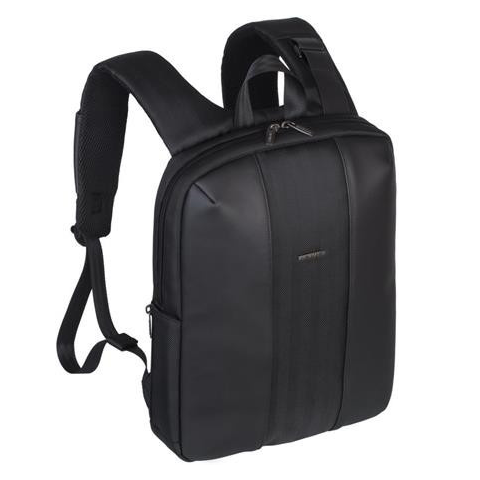 Notebook hátizsák, 14, RIVACASE Narita 8125, fekete -a táska anyaga poliészter műbőr betétekkel -két első cipzáras zseb a tartozékoknak -kényelmes párnázott, állítható vállpánttal -belső méret: 26x35,5x3,5 cm -súlya: 0.625kg Gyártó/első EU forgalm