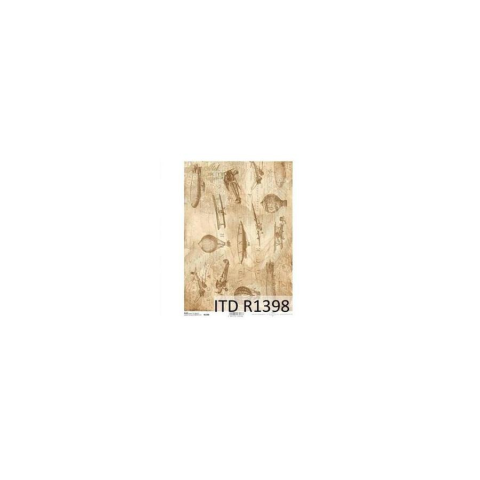 Rizspapír, Barnás alapon léghajók. A4 méretű, 30–35 GSM súlyú rizspapír, kissé áttetsző tónusban. Jól látható, szabálytalan méretű szálakat tartalmaz, amelyek minden irányban helyezkednek el a papír felületén, eredeti megjelenést és szerkezetet kölcsönözve neki. A papír szokatlanul erős és tartós, nem málik szét a kézben. Könnyen ragasztható a dekupázstechnikában használt bármely alaphoz (üveg, fa, MDF, polisztirol hab stb.), bármilyen dekupázs rag