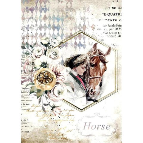 Rizspapír - ló hölggyel, keretben