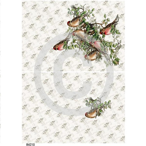 A4 méretű, 30–35 GSM súlyú rizspapír, kissé áttetsző tónusban. Jól látható, szabálytalan méretű szálakat tartalmaz, amelyek minden irányban helyezkednek el a papír felületén, eredeti megjelenést és szerkezetet kölcsönözve neki. A papír szokatlanul erős és tartós, nem málik szét a kézben. Könnyen ragasztható a dekupázstechnikában használt bármely alaphoz (üveg, fa, MDF, polisztirol hab stb.), bármilyen dekupázs ragasztóval.