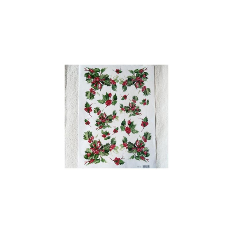 A3 méretű, 30–35 GSM súlyú rizspapír , kissé áttetsző tónusban. Jól látható, szabálytalan méretű szálakat tartalmaz, amelyek minden irányban helyezkednek el a papír felületén, eredeti megjelenést és szerkezetet kölcsönözve neki. A papír szokatlanul erős és tartós, nem málik szét a kézben. Könnyen ragasztható a dekupázstechnikában használt bármely alaphoz (üveg, fa, mdf, polisztirol hab stb.), bármilyen dekupázs ragasztóval.