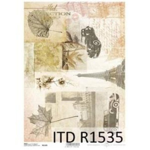 1 kép Rizspapír - old-timer autók, levelek és Eiffel torony