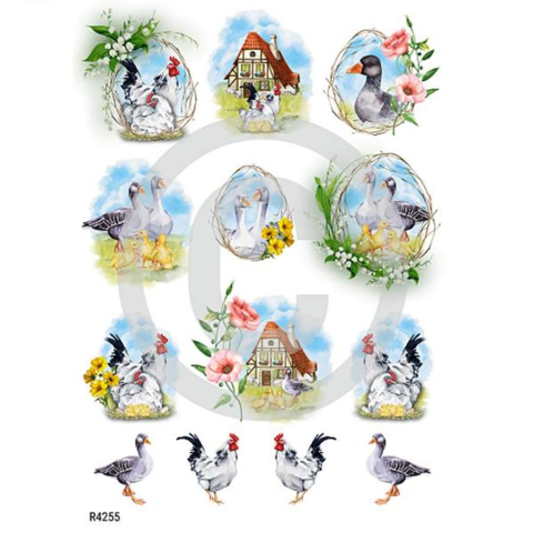 A4 méretű, 30–35 GSM súlyú rizspapír, kissé áttetsző tónusban. Jól látható, szabálytalan méretű szálakat tartalmaz, amelyek minden irányban helyezkednek el a papír felületén, eredeti megjelenést és szerkezetet kölcsönözve neki. A papír szokatlanul erős és tartós, nem málik szét a kézben. Könnyen ragasztható a dekupázstechnikában használt bármely alaphoz (üveg, fa, MDF, polisztirol hab stb.), bármilyen dekupázs ragasztóval.