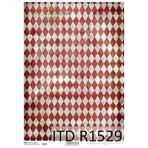 Rizspapír - piros-fehér rombuszminta dekorációs kellék 1 kép