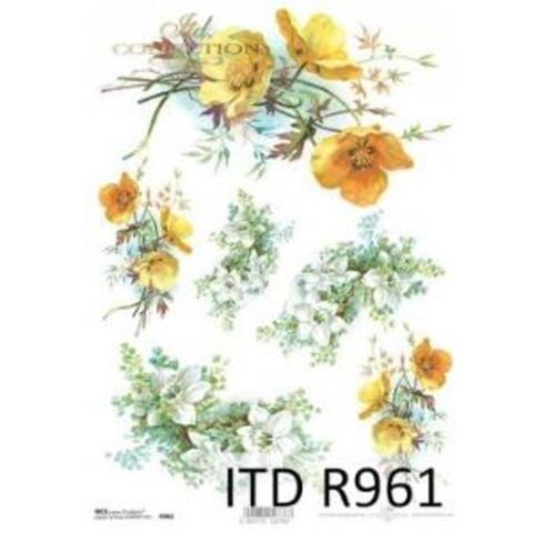 Kiváló minőségű, texturált rizspapír, amit a nyomtatási technika egyedülálló termékké teszi a tervezés és a minőség szempontjából. Ideális dekupázs, vegyes média művészeti és kézműves projektekhez. Sárga virágok