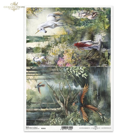 A rizspapír egy könnyű, 30-35 gr-os papír, amely vékony szálakat tartalmaz. Bármilyen felületen használható dekupázs (decoupage) technikához a fától a vászonig, üvegig, fémig és akár textilre is! Tökéletes választás mixmédiás projektekhez. Ezeket a papírokat egész lapként vagy darabonként is használhatjuk.