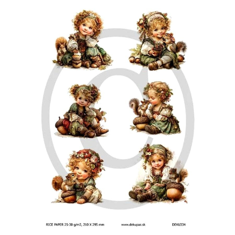 1 kép Rizspapír - vintage kislány mókussal, makkal