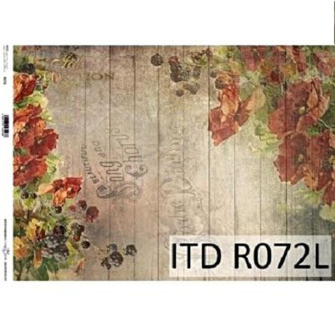 A3 - 297x420 mm / 11,7x16,54 hüvelyk méretű, 30–35 GSM súlyú rizspapir, kissé áttetsző tónusban. Jól látható, szabálytalan méretű szálakat tartalmaz, amelyek minden irányban helyezkednek el a papír felületén, eredeti megjelenést és szerkezetet kölcsönözve neki. A papír szokatlanul erős és tartós, nem málik szét a kézben. Könnyen ragasztható a dekupázstechnikában használt bármely alaphoz (üveg, fa, mdf, polisztirol hab stb.), bármilyen dekupázs ragaszt