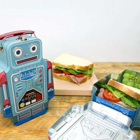 Robot formájú uzsonnás doboz. méret: 16,2 x 24,5 x 8,5 cm