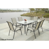 1 kép ROJAPLAST xt1012Tt set fém kerti üvegasztal napernyőlyukkal, 6 db székkel