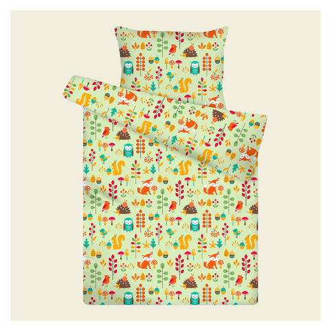 Ovis méretű mintás paplan-párna garnitúra 90*140 cm paplan 40*50 cm párna Vidám mintás fedő réteg: 35% pamut-65% PE Töltet: 100% rugalmas puha PE szál 40 fokon mosható TILOS vasalni : Nem kell külön ágyneműhuzatot húzni rá Szárítóg