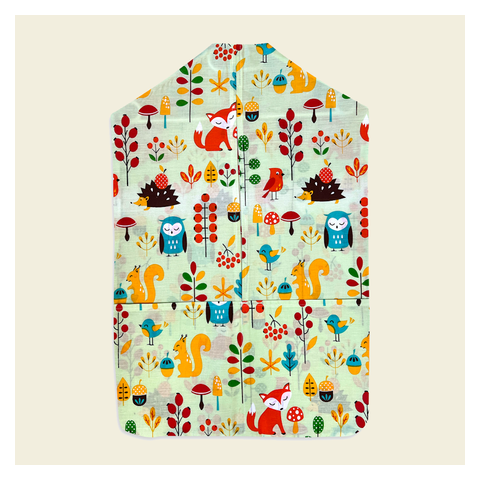 Rókás zöld oviszsák 43*70 cm 50% pamut-50% poliészter vállfával a nagyobb tároló rész előtt kis zsebbel az apróságok tárolására 40 fokon moshat
