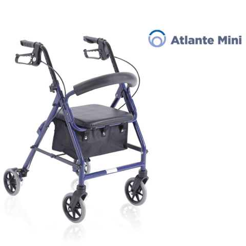 Termék jellemzői: - rollator 4 alumínium kerekek - ATLANTE MINI Rendeltetésszerű használat: - két karral kezelt segédeszköz, amely alkalmas járási nehézségekkel küzdő emberek támogatására és/vagy mozgásának elősegítésére - Összecsukható rollátor - Festett