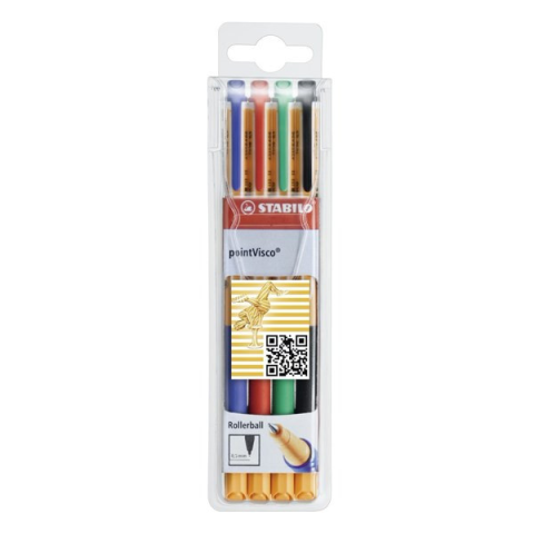 Rollertoll STABILO PointVisco 4 darabos Úttörő zselés technológiával készült, kiváló minőségű roller toll. Külsőleg a Stabilo Point 88 design-ját tükrözi. Robosztus hegy, csúszásgátló fogózóna, klipszes modell.Az ezzel a tollal készült írás nem kenődi