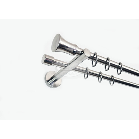 1 kép Roma 2 rudas fényes inox színű fém karnis szett - 200 cm