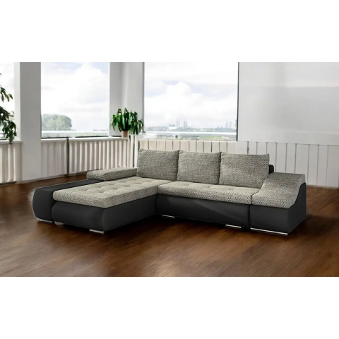 Róma sarokkanapé fekete bőr világos szürke zsákszövet remek színekben 290 cm bútor termékleírás