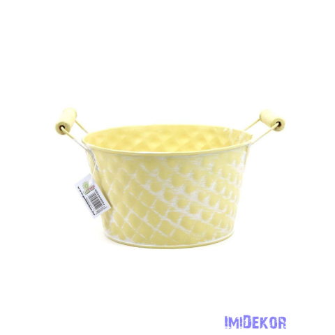 1 kép Rombusz mintás hamvas kerek bádog tál - Krémsárga