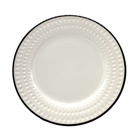 Rome fehér desszert tányér -19 cm átmérő -Rombusz mintával -Barna szegéllyel