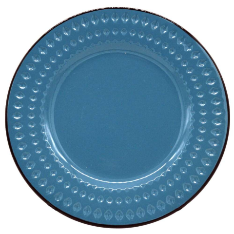 Rome kék lapostányér -27,8 cm átmérő -Rombusz mintával -Barna szegéllyel