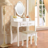 1 kép Rome Tükrös Fésülködő Asztal Székkel - Fehér, Domború Díszítésű