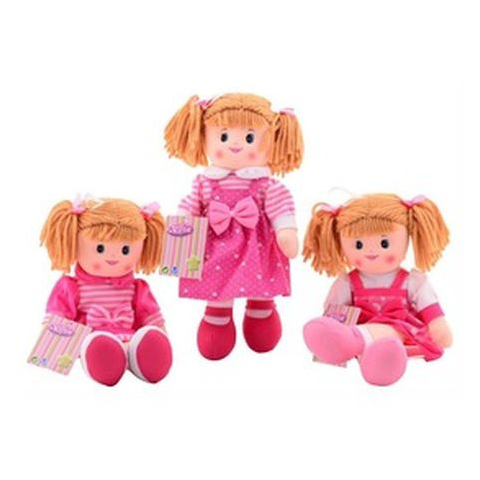 Rongybaba rózsaszín ruhában - 40 cm Copfos puha rongybaba, mintás ruhában! A Rongybaba rózsaszín ruhában egy puha szövetből készült, rongyokkal töltött játékbaba, hosszú copfokkal A Rongybaba rózsaszín, masnival díszített mintás ruhába van öltöztetve