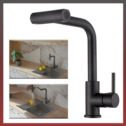 1 kép Rotaro konyhai mosogató csaptelep fekete BLR-769D