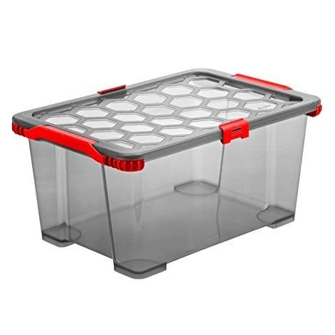 Rotho Evo total műanyag tároló doboz, 44 L - antracit/piros bútor termékleírás