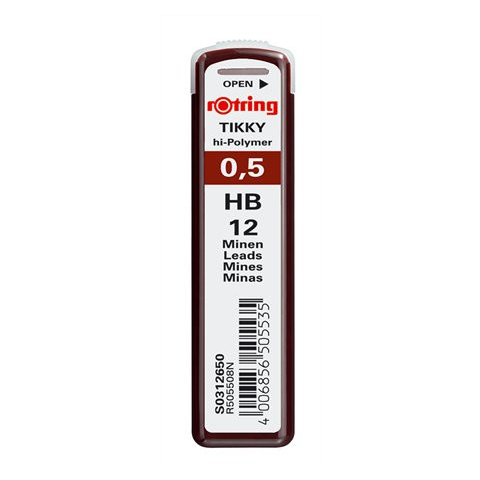 Grafitbél, HB, 0,5 mm, ROTRING az extra erős hi-polymer nyomósiron betét értékesebbé teszi a nyomósiront egy egyszerű utántöltős nyomósironnál 12 szál/tubus