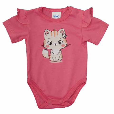 A rövid fodros ujjú, cuki cicás mintás baba body egy igazi must-have kisbabád számára! Ez a világos pink színű darab nem csak a szíveket dobogtatja meg, hanem a babád bőrének is megfelelő komfortot biztosít. A 100% pamut anyagból készült body garantálja a