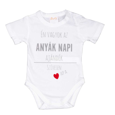 Rövid ujjú Anyák napi baba body Egy igazán aranyos választás a Anyák napjára. Képzelj el kisbabáját ebben a fehér, rövid ujjú baba bodyban, melyen Én vagyok az Anyák napi ajándék szívesen apa felirat olvasható. Kiváló minőségű, magyar termék, amelyben ga