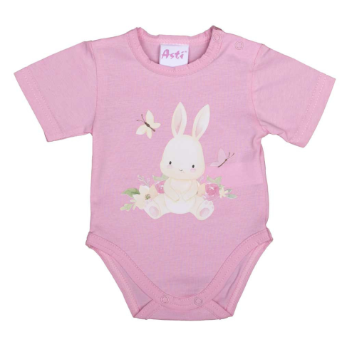 Rövid ujjú baba body cuki Nyuszi mintával A rózsaszínű, rövid ujjú baba body bájos nyuszi mintával varázsolja még édesebbé kisbabáját. A vidám nyuszis minta garantáltan mosolyt csal az arcára minden kisgyermeknek és szülőnek egyaránt. Kiváló választás le