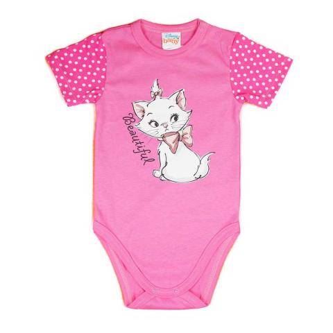 Egy igazán különleges választás minden apróságnak, aki szereti a vidám mintákat! A rövid ujjú baba body gyönyörű Marie cica mintával készült, amit minden Disney rajongó imádni fog. Kényelmes viseletet biztosít a vállon található patentos kialakításnak kös