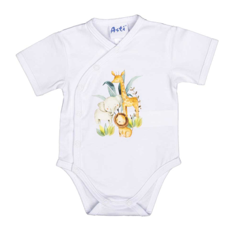 Rövid ujjú elöl patentos baba body szafaris mintával Vidd magaddal az afrikai szafarit minden nap! Ez a rövid ujjú baba body vidám szafaris mintával azonnal feldobja a kis lurkó napját. Készült a legpuhább, 100% pamut anyagból, hogy garantáltan kényelmes