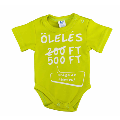 Fedezze fel ezt a rövid ujjú, feliratos baba body-t, amely vidám kiwi zöld színével és játékos feliratával azonnal feldobja a picur öltözékét! Unisex kialakításának köszönhetően kisfiúknak és kislányoknak egyaránt tökéletes választás. A body vállán találh