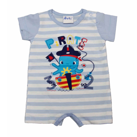 A baba bőrének kényeztetésére készült ez a rövid ujjú napozó, mely puha, 100% pamut anyagból készült. A polip minta és a világoskék csíkos alap elbűvölő kontrasztot teremt, ami a babád stílusát emeli ki. A rugalmas anyag töké