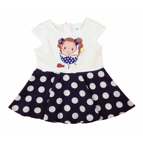 1 kép Rövid ujjú pamut kislány ruha fodros, pörgős szoknyarésszel