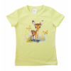 Rövid ujjú póló, Őzike mintával Ez a rövid ujjú kislány póló tökéletes választás a mindennapokra! Kiváló minőségű, elasztikus pamut anyagból készült, amely kellemesen puha és légáteresztő, így egész nap kényelmes viseletet biztosít. Klasszikus szabása és