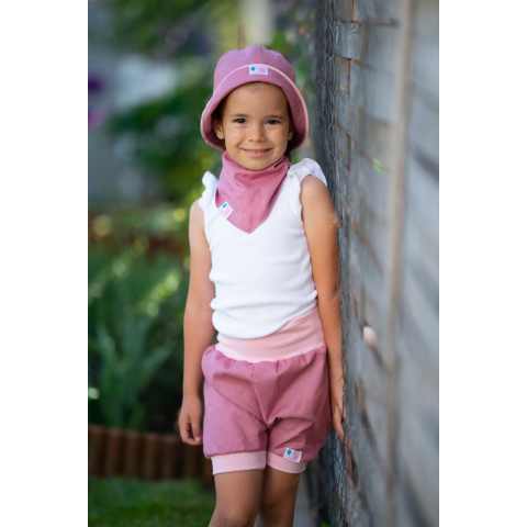 A PeggyBaby nyári kisnadrágja 100 % pamutanyagból készül, kellően vékony és szellős, így garantáltan nem lesz melege a kicsinek benne. Dereka rugalmas passzéanyag, úgy mint a lába szárának a vége is, ami színben tökéletesen harmonizál