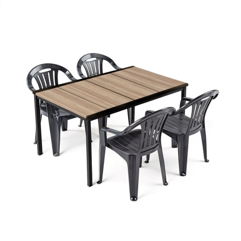 Rowen 4+1 kerti bútor garnitúra szett kőris-grafit Rowen 4 + 1 műanyag kerti garnitúra – kőris & grafitEgyetlen garnitúrában minden, amire a reggeli kávétól a baráti vacsoráig szükséged van: négy könnyű, egymásra helyezhető Mallorca szék + egy tágas Po