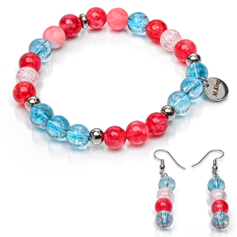 1 kép Royal Happiness – Topáz, jáde, hegyikristály és eperkvarc exkluzív ásvány ékszerszett (karkötő + fül