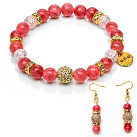 1 kép    Royal Lovers – Hegyikristály és eperkvarc exkluzív ásvány ékszerszett (karkötő + fülbevaló) dobozban